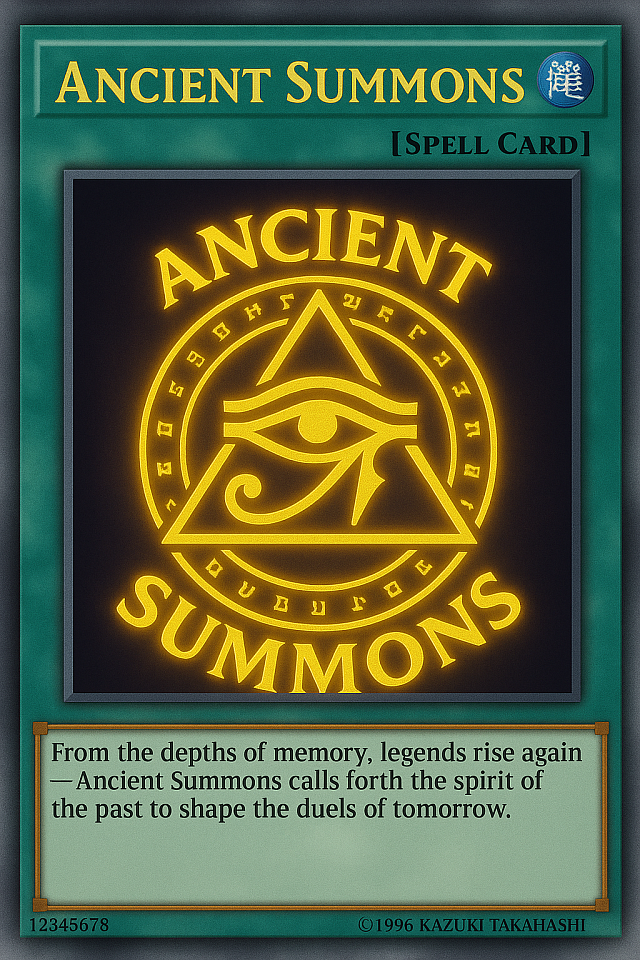 The Ancient Summons archive is dedicated to showcasing Yu-Gi-Oh! cards across eras. Browse sets, iconic monsters, spell & trap classics, and collector favorites. Each entry is a piece of trading card history.